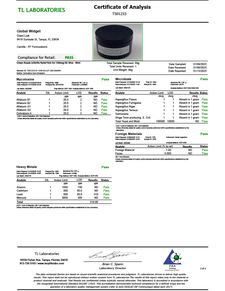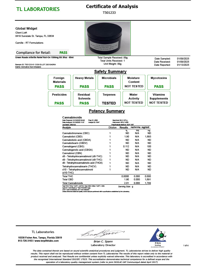 Our Pain Relief Roll On CBD Cream features a proprietary blend of active ingredients and botanicals: