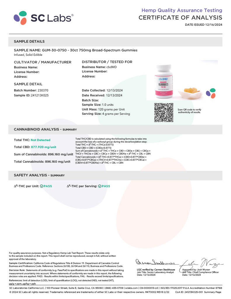 Broad Spectrum CBD denotes that the total THC content of the CBD Gummies is within Non-Detectable levels.