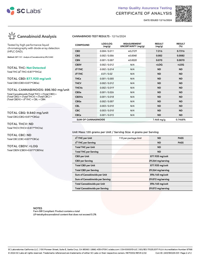 • Hemp Extract (Cannabidiol, Cannabigerol, Cannabinol)