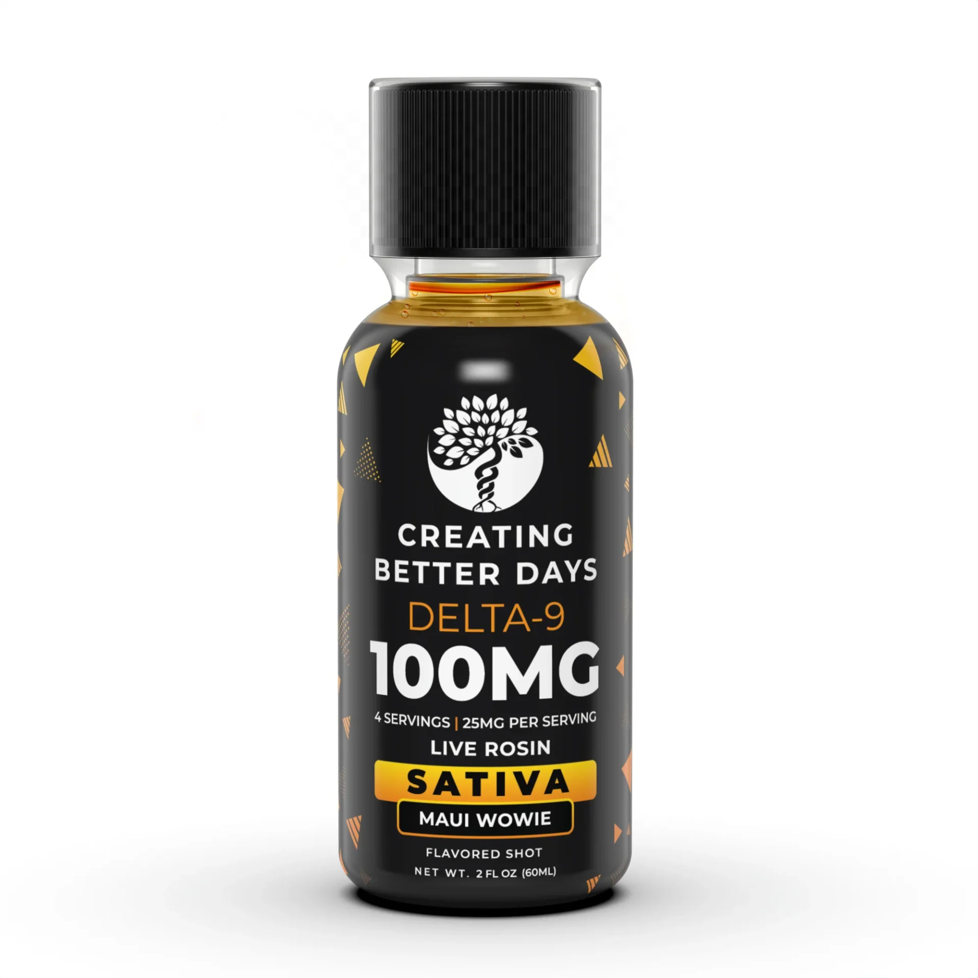 Maui Wowie Nano THC Shot by Creating Better Days delivers fast-acting support, uplifting sativa vibes, and smooth live rosin flavor in one easy 2oz bottle. This 100mg thc shot features nano delta 9 thc for quicker absorption and a more efficient experience. If you want a nano thc drink that fits daytime routines and easy portion control, this shot is a strong pick.