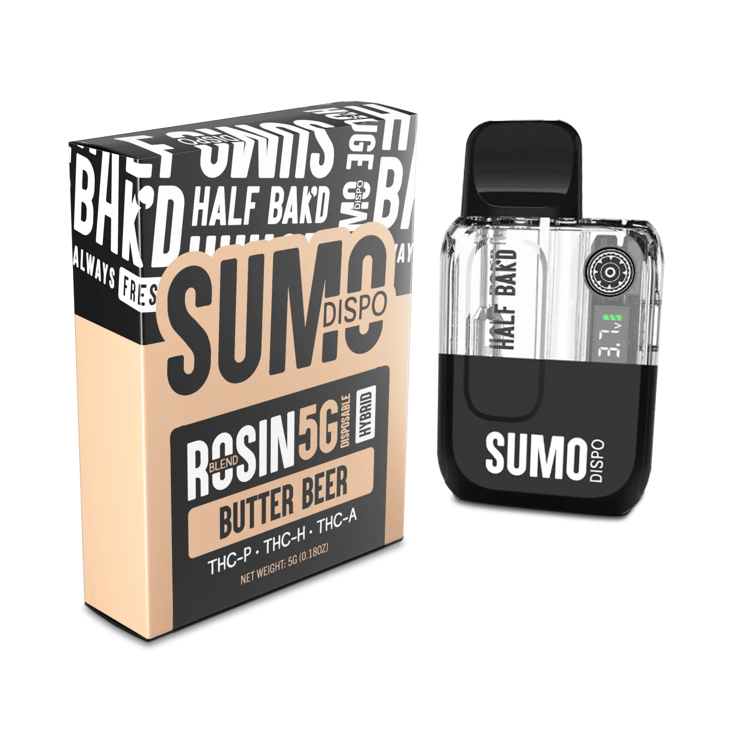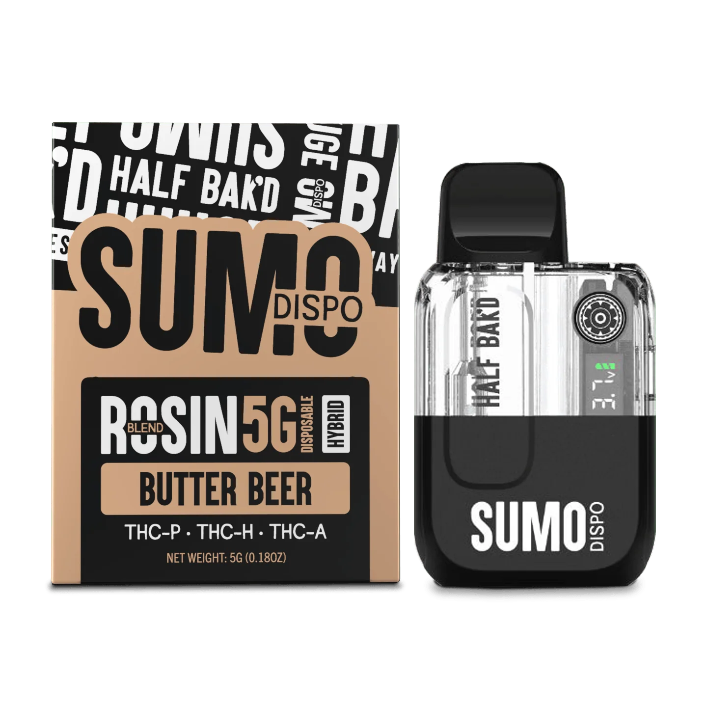 Half Bak’d | Rosin Blend Sumo THC Vape – Butter Beer | 5G – Hybrid Disposable