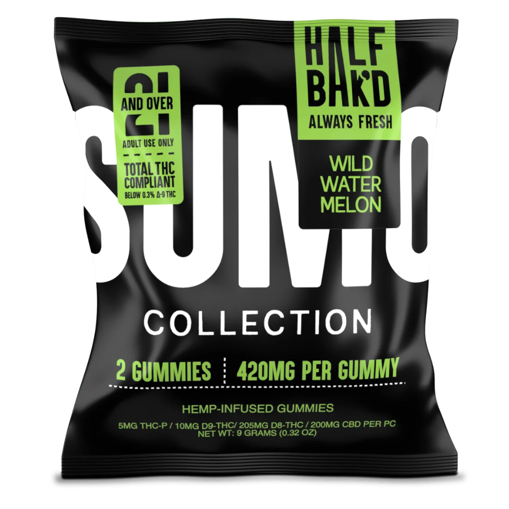 The 2ct Wild Watermelon Sumo Gummies by Half Bak’d are legal hemp-derived edibles under the 2018 Farm Bill. Potent, delicious, and ready to ride.