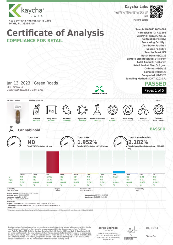 The Green Roads CBD Sleep Tincture is generally safe when used as directed. Always consult your primary care physician before starting any new supplement, especially if you have any medical conditions.